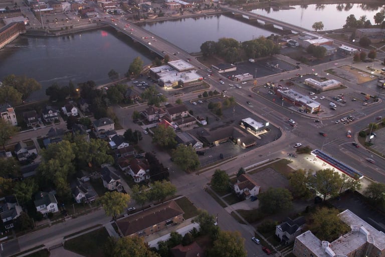See Dixon IL On the Rock River and Galena Ave from the Air. Filmed in 4K